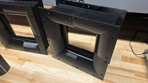 -To measure the opening needed for these, if your port opening needs to be 10"x10", the hole opening in your wall needs to be the radius of the port sections x 2 plus .75"x2. For example, if you need a 10"x10" port opening and you are using the 3" diameter port pieces, you would take 10"+1.5"+1.5"+.75"+.75", so the opening would need to be 14.5"x14.5"