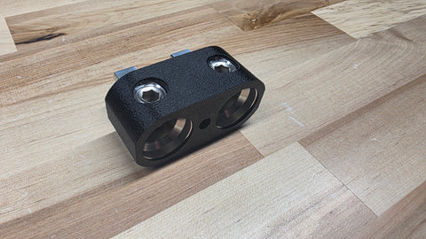 4/0 to 1/0 cased inputs, machined from 6061 aluminum with a plastic case. These are offered in 2 sizes, 1 without remote and 1 with remote, if your amp inputs looks like the one in the photo it will fit. The minimum space between input holes from one power block to the next center of hole to center of hole is 1.25"(teference cad photo) These fit 4/0 car audio cable(SKY HIGH XXL 4/0. These do not fit taramps. Includes stainless set screws.