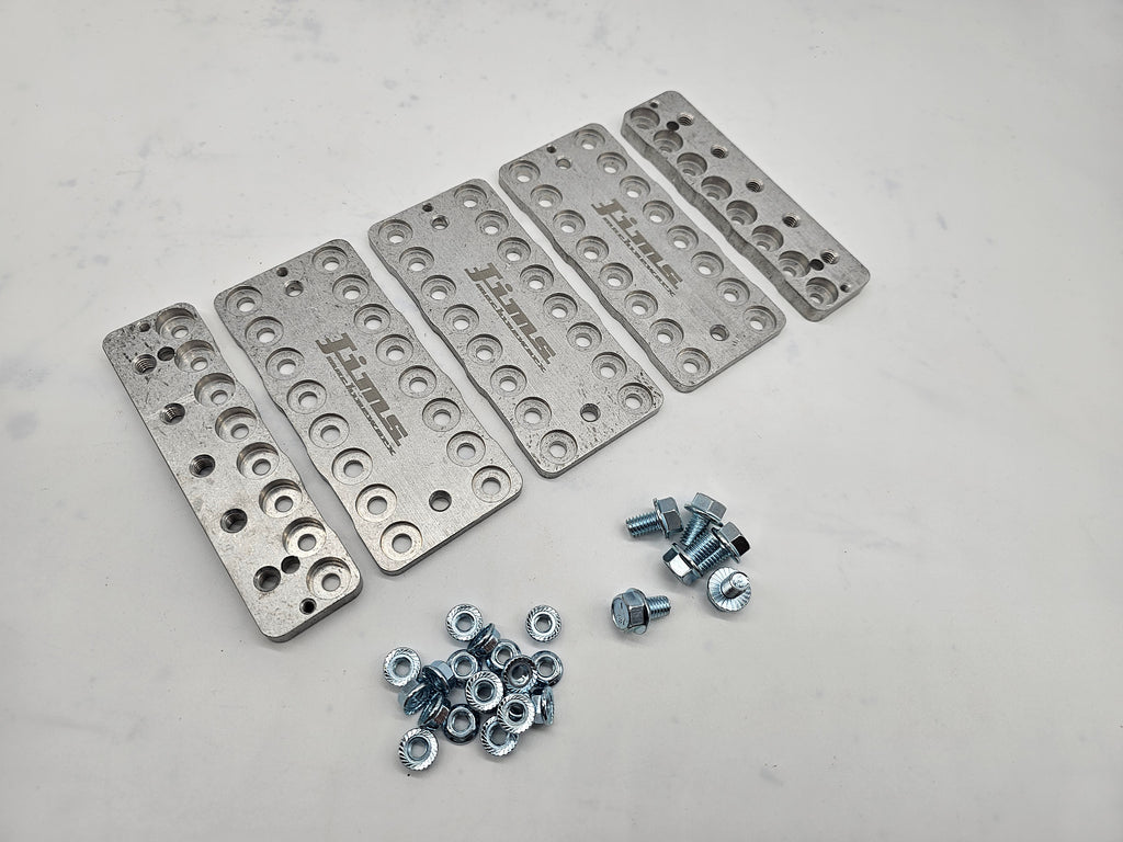 EVE 22AH 3.2V ECONOMY BUSS BAR SETS, Available in 4 bank, 5 bank, 6 bank, 8 bank, 10 bank, and 12 bank in a 4 series configuration . CNC Machined from 6061 aluminum, CNC laser etched with a tumbled finish and includes 6mm cell nuts, 5/16" lug bolts and balancer screws.
