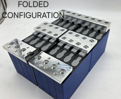 EVE 22AH PREMIUM BUS BAR SETS, Bus bars are cnc machined from 6061 aluminum, standard links are 1/2" thick, long folded and back to back links are a massive 1"x1-1/2" for proper power distribution, 1/2" thick end bars utilizing dual rows of lug bolts. All configurations include chipboard cell isolator spacers and the folded and back to back configurations include 1/4" thick acrylic spacers to shield the links and end bars from one each other. Includes m6 cell nuts, lug bolts and balancer screws. ALL DIMENSIONS FOR ALL SIZES AND CONFIGURATIONS LISTED BELOW, BUILD THE INSIDE DIMENSIONS OF YOU BATTERY BOX TO THESE.