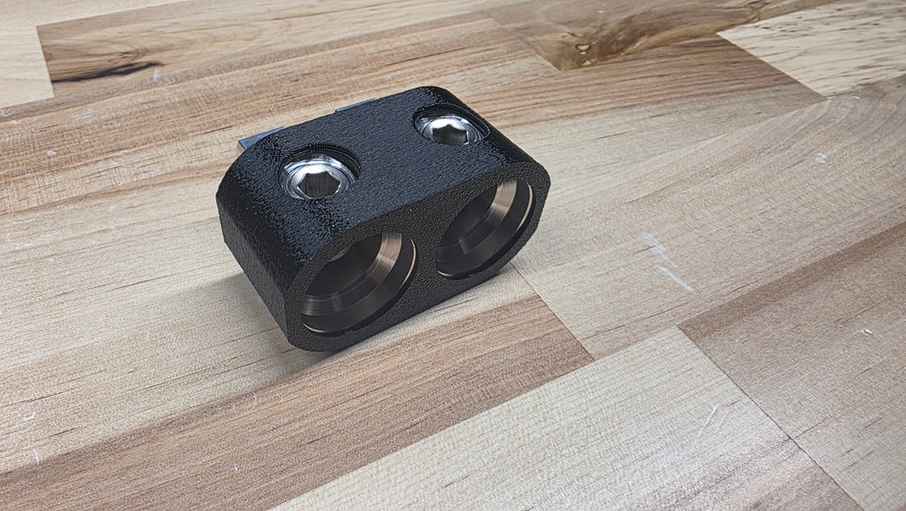 4/0 to 1/0 cased inputs, machined from 6061 aluminum with a plastic case. These are offered in 2 sizes, 1 without remote and 1 with remote, if your amp inputs looks like the one in the photo it will fit. The minimum space between input holes from one power block to the next center of hole to center of hole is 1.25"(teference cad photo) These fit 4/0 car audio cable(SKY HIGH XXL 4/0. These do not fit taramps. Includes stainless set screws.