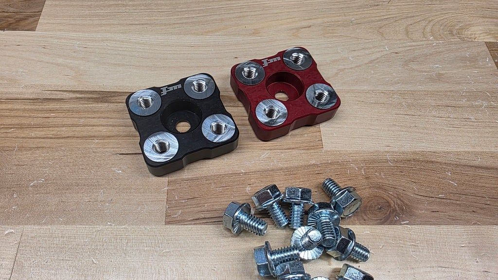 Bolt down lug type battery terminals, cnc machined from 6061 aluminum and anodized, these include 5/16" serrated flange bolts.